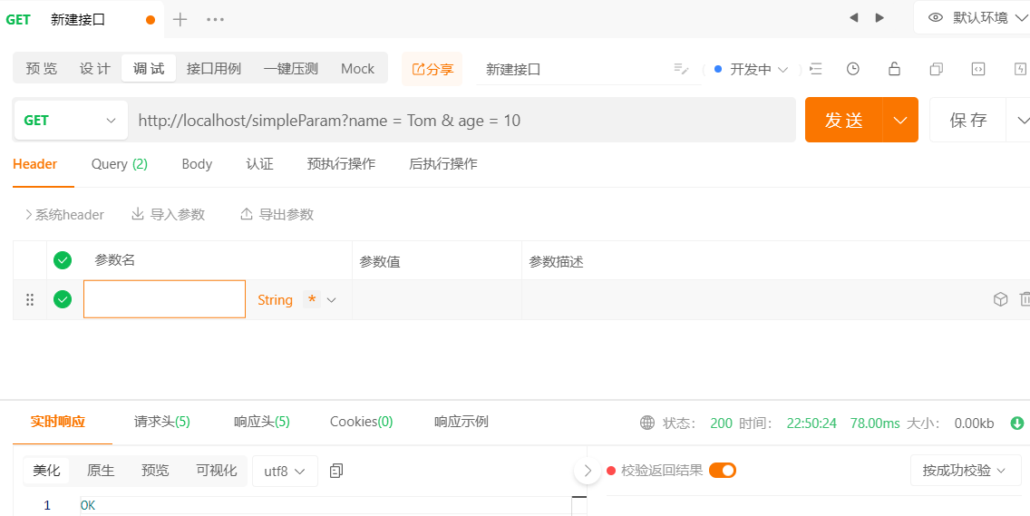 请求路径(get方式):http://localhost/simpleParam?name = Tom & age = 10